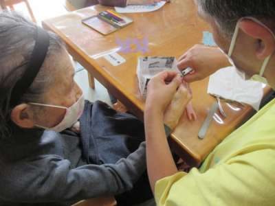 スタッフが爪切りを行い、この後マニキュアを塗って