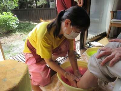 足湯はスタッフがマッサージを