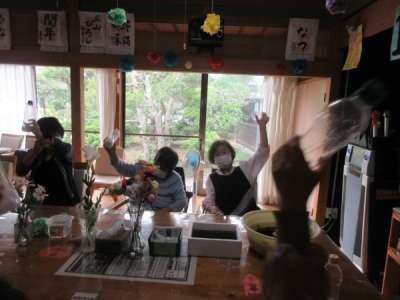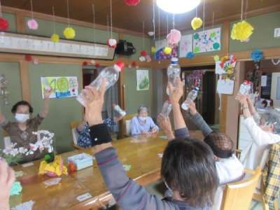 午前は、ペットボトル体操です