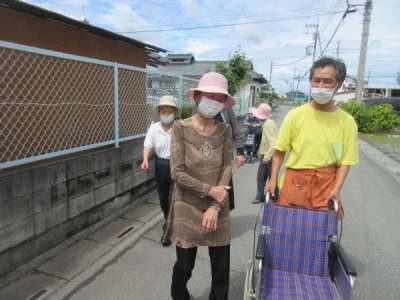 昼食後、天気が良いので機能訓練もかね散歩に行きま
