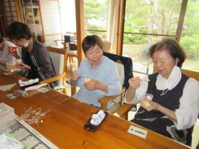 おやつは、プリンを召し上がってもらいました
