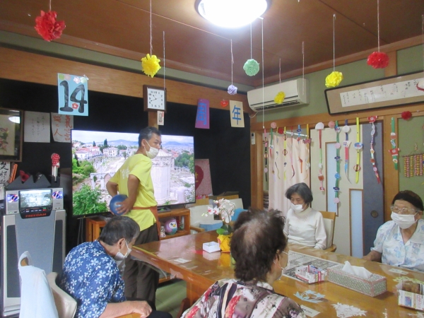 ご夫婦で見学の為に来庵された二名の方も交えて、ボール体操をしっかりと