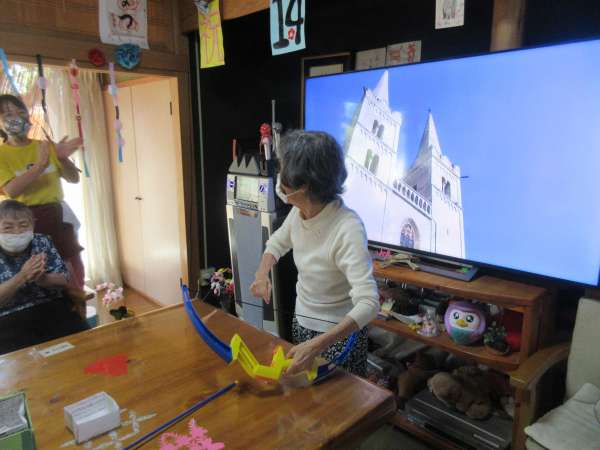 幸せの幸望庵で行う歌謡体操では、しっかりと身体を曲げる、伸ばす事などを