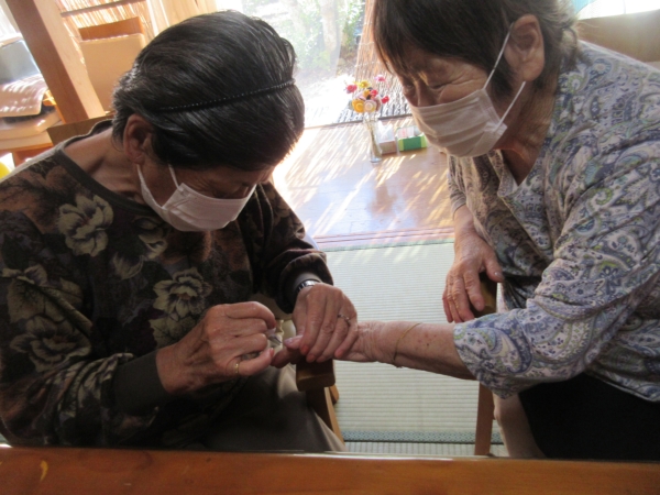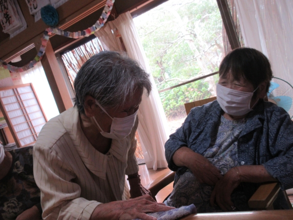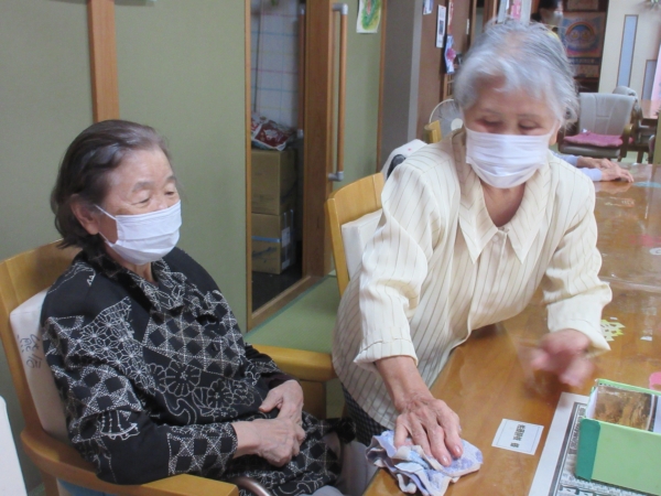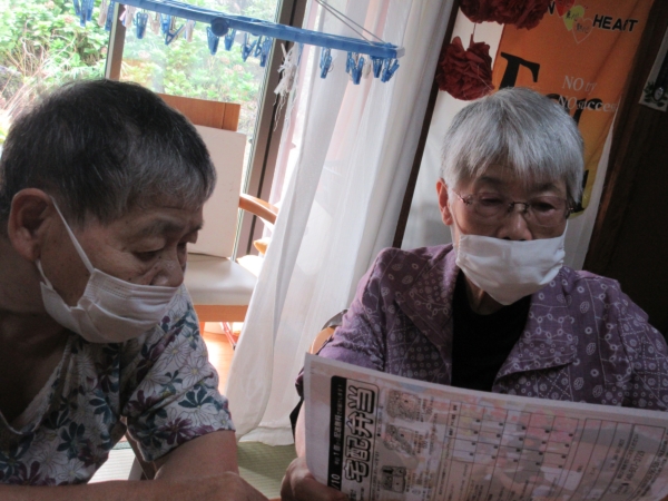 幸せの幸望庵の母たちでひとつの机を囲んで、