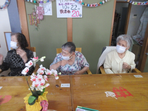 昼食が食べ終わった後、昨年の敬老会の写真を見て、