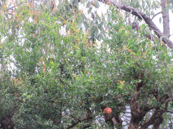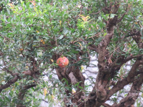 ザクロの実が一ついい色に—----幸せの母達がいつも眺めて
