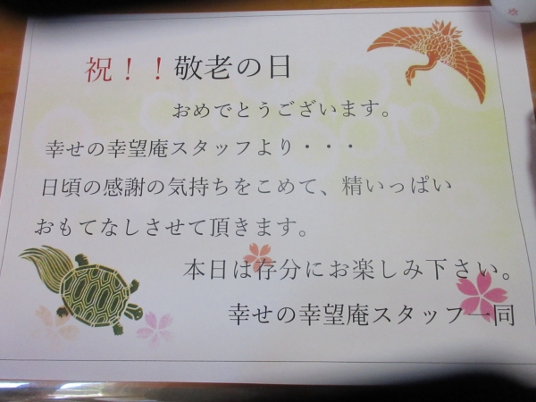 幸せの幸望庵では感謝の気持ちを込め、敬老会を開催させて致しました