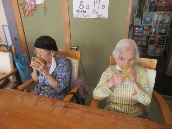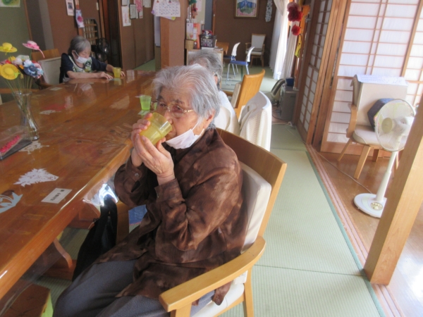 歌謡体操で身体を動かした後は、水分補給を行いました