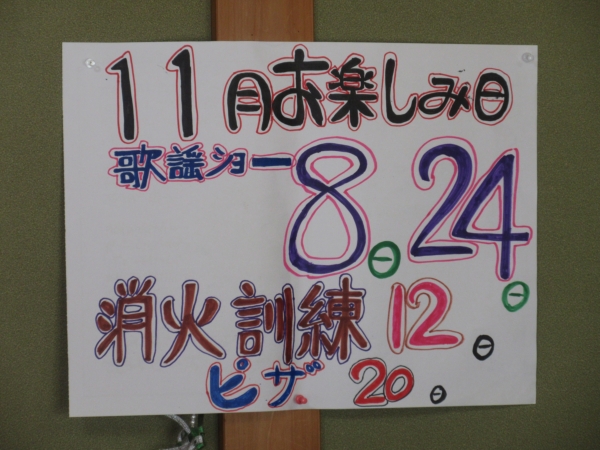 11月のお楽しみ歌謡ショーは8日と24日に決まりました