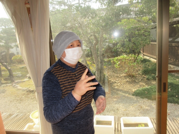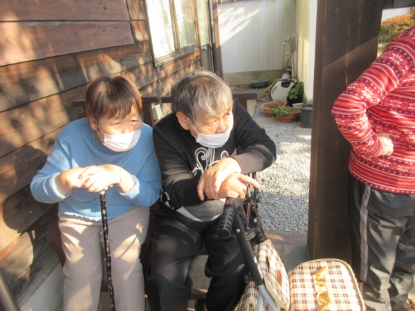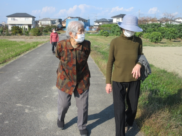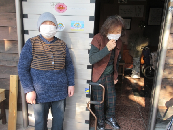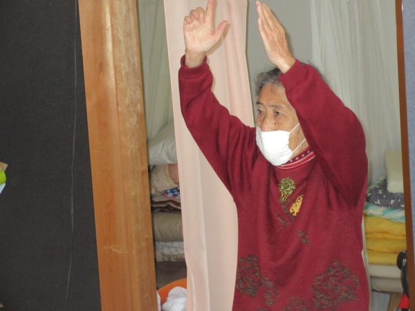 寒くなりましたが、幸せの母達は元気に立位で朝の体操を行います