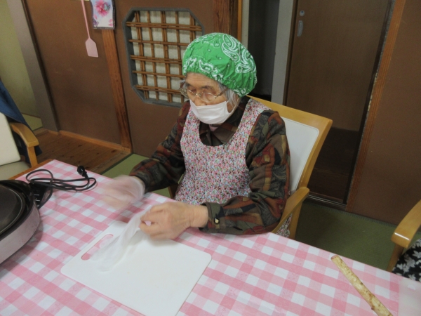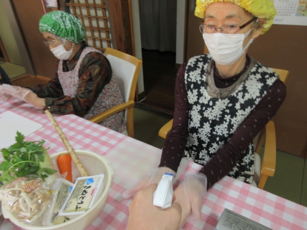 身支度を整えた後、アルコール消毒を済ませてから、調理に入ります