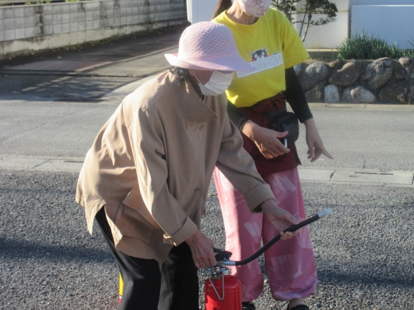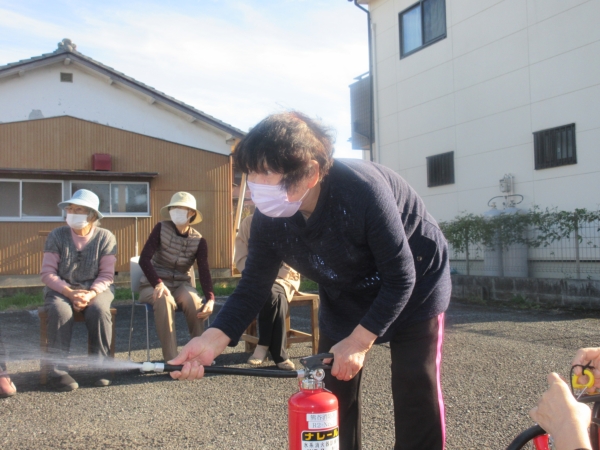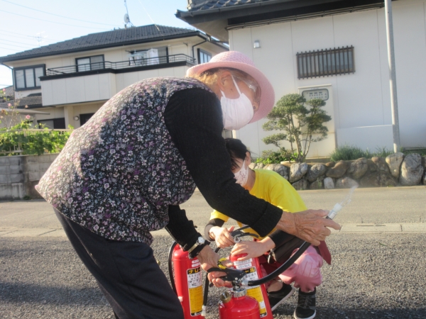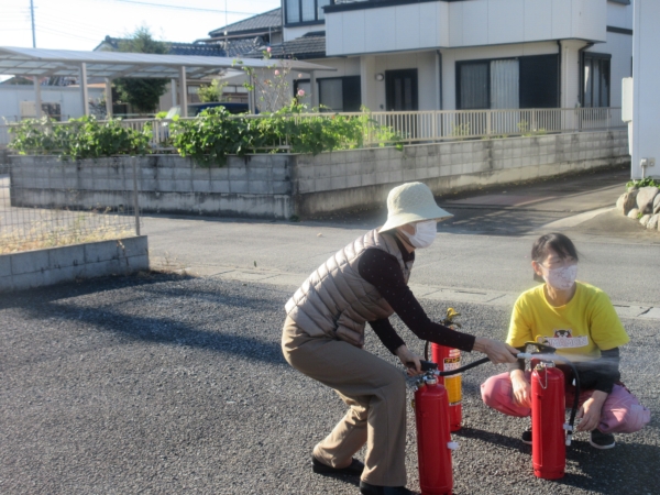 母はなかなかピンが外れなく消火器を扱うのが難しく