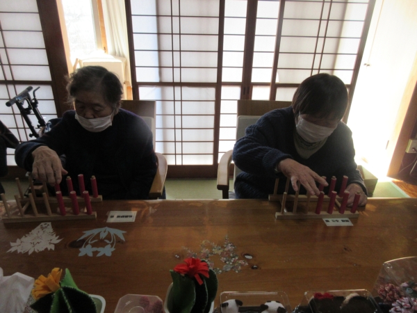 ゴム体操が終わった後、手先の運動をかねて、こちらの道具を使って