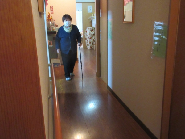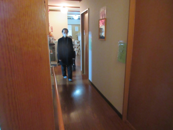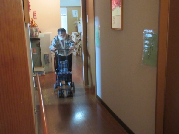昼食後、機能訓練の効果測定の為、一定の距離を歩いて頂き、