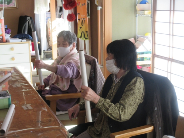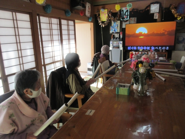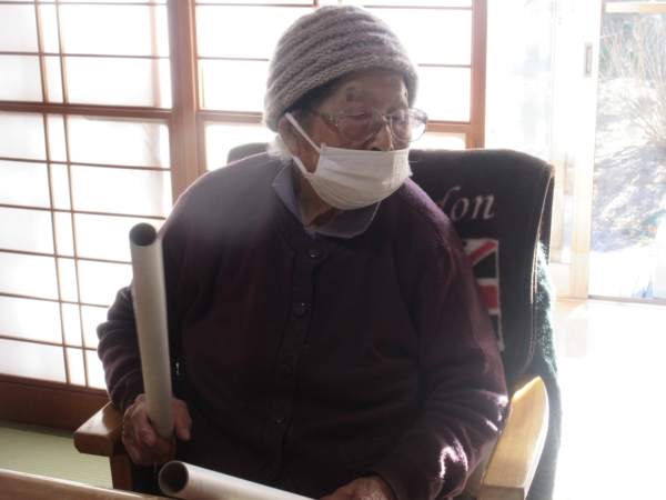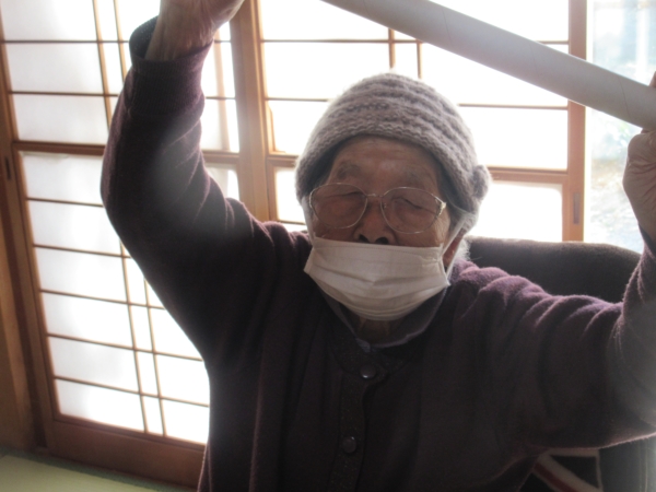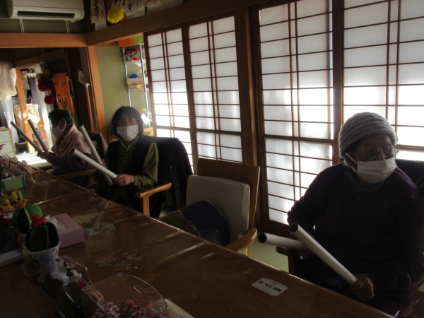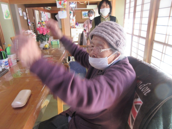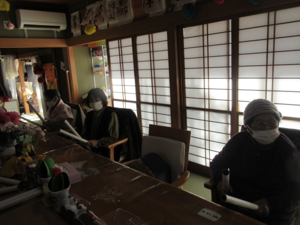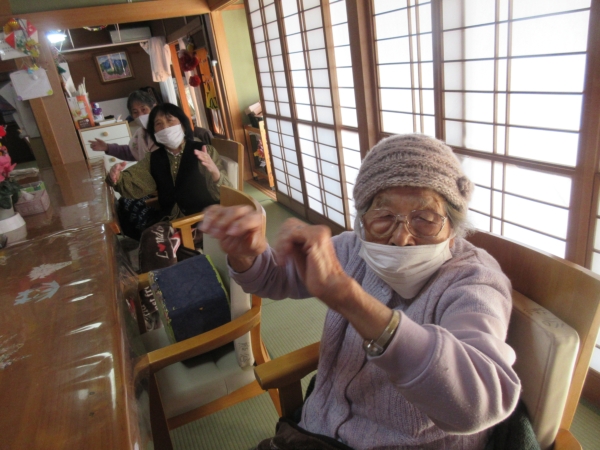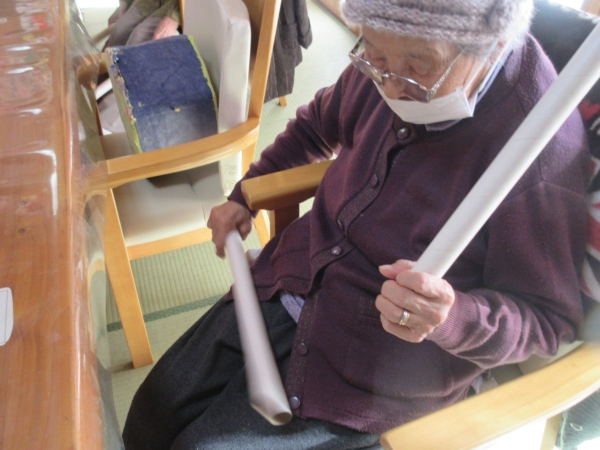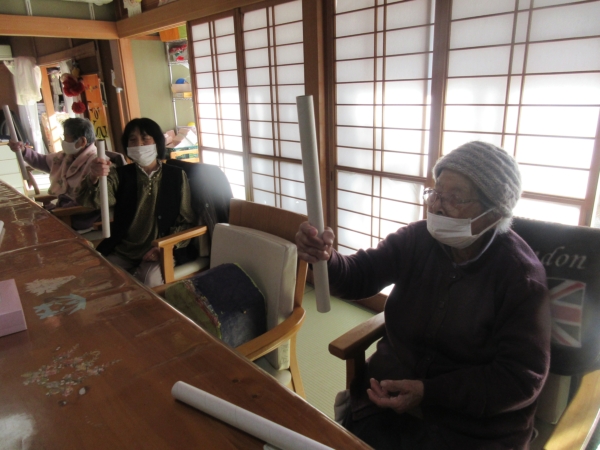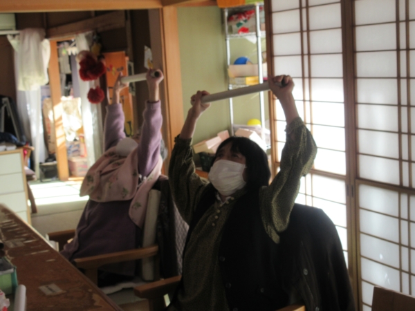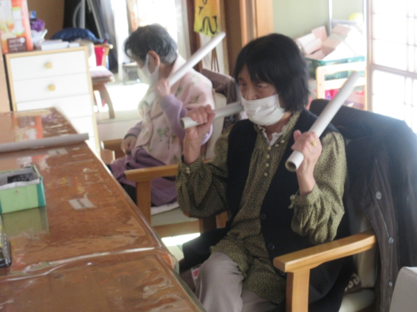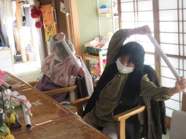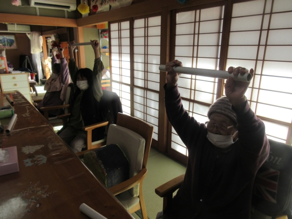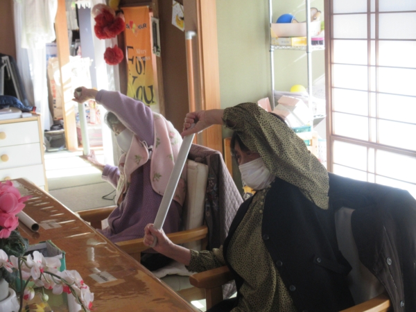 水前寺清子さんの『三百六十五日のマーチ』にあわせて、棒をリズムよく