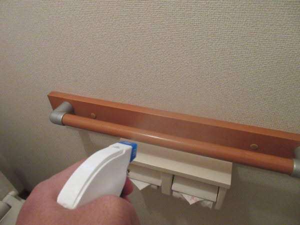 トイレなどは、感染症予防の観点より、こうして定期的にアルコール消毒