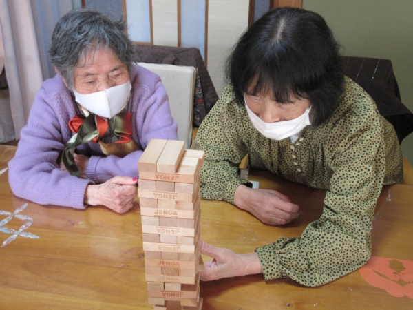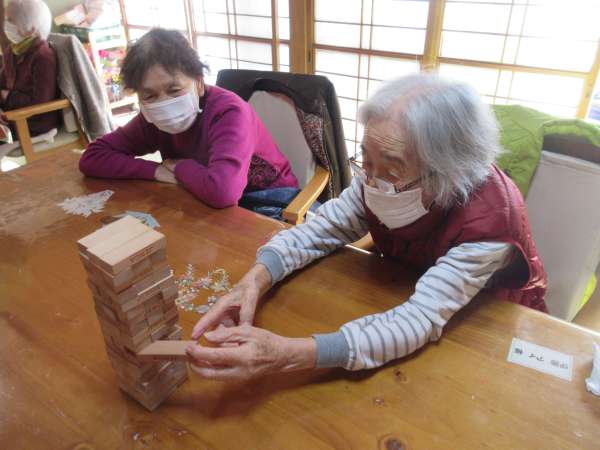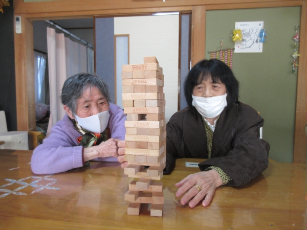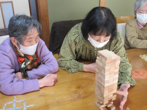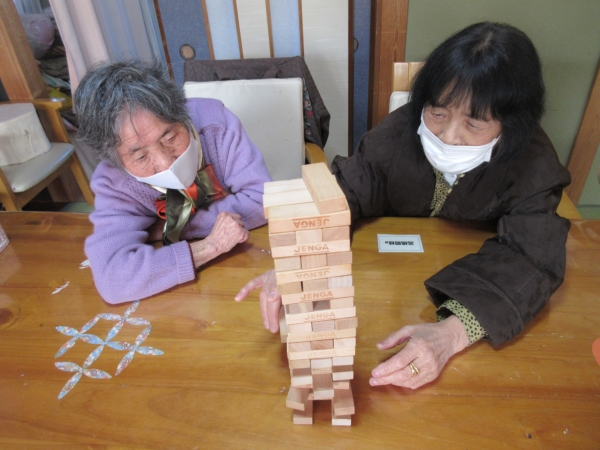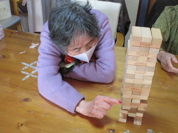 午後の体操の後は、ジェンガの時間です