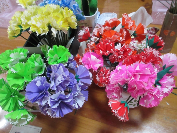 努力のかいがあってこんなに沢山のカーネーションができました