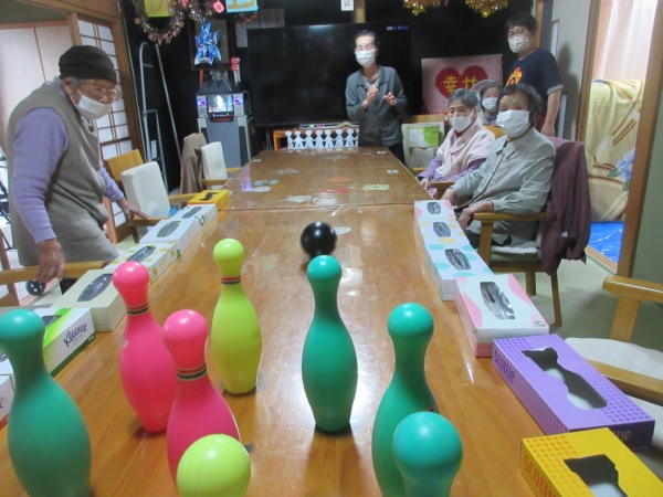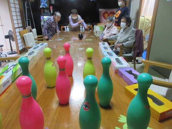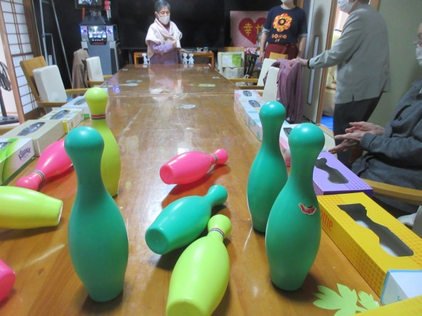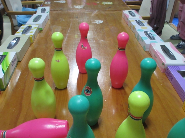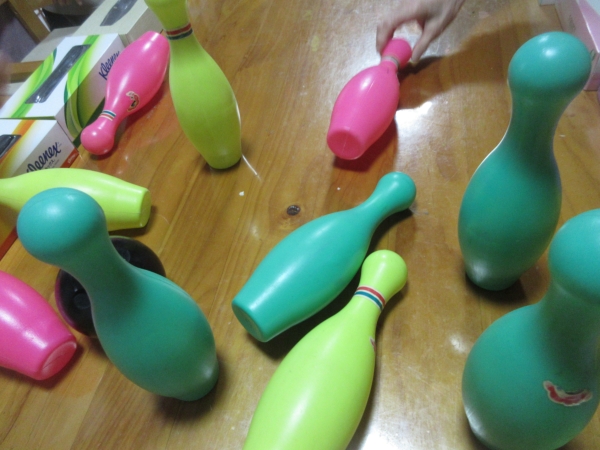 皆様、ピンを倒そうと、身体を目いっぱい使い、ボーリング球を