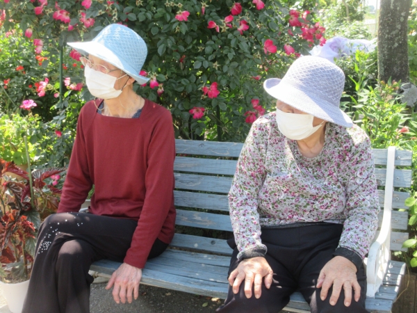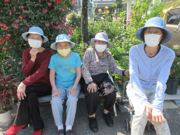 🌹を見て幸望庵に向かっている母達の後ろ姿です