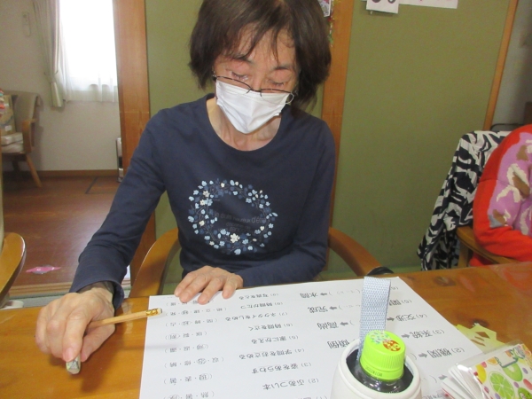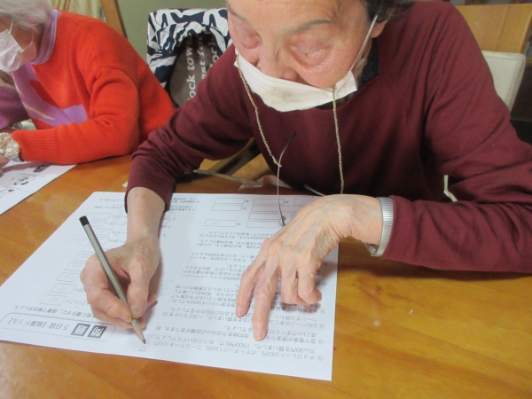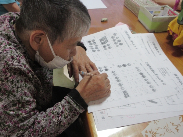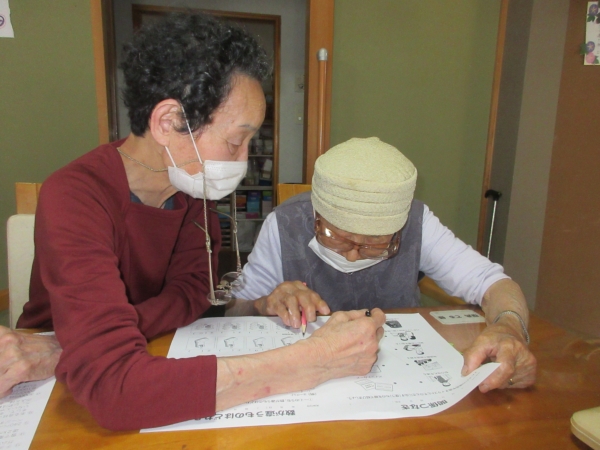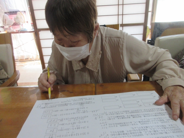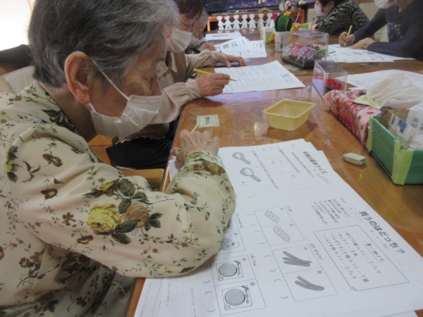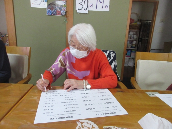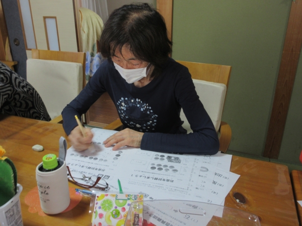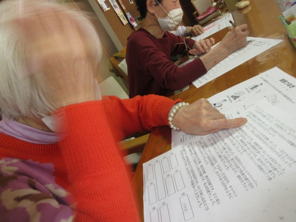 午後レクは、難問にチャレンジ 脳トレーニングです