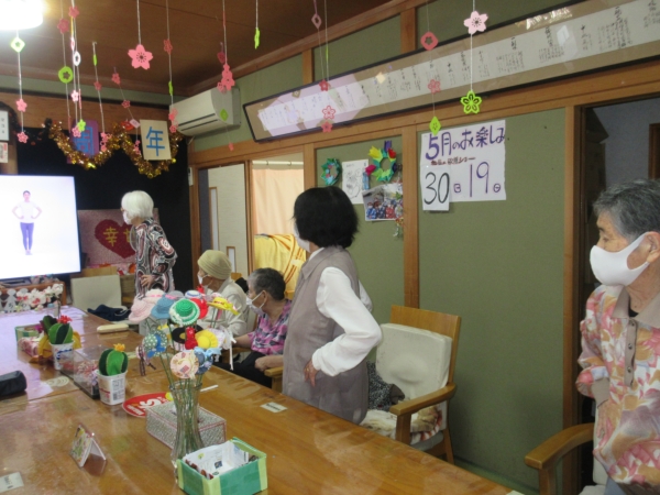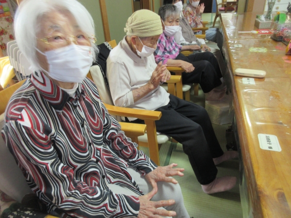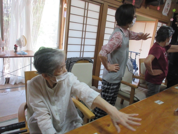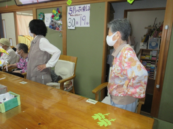 立位、座位、ご自分のペースで音楽に合わせて身体を動かして行きます