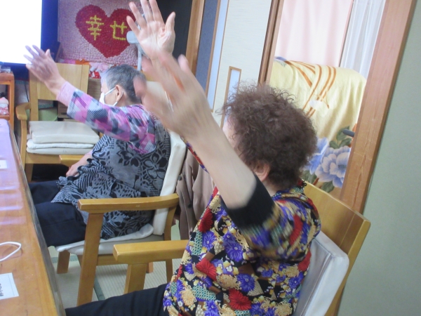 午前のレクは、柔軟体操です