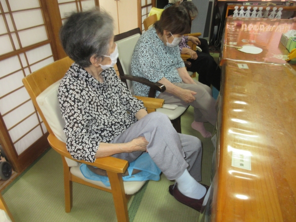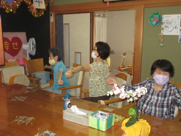 午前はごぼう先生と体操です。まずは、口のストレッチです