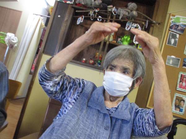 午後の体操はお手玉回し