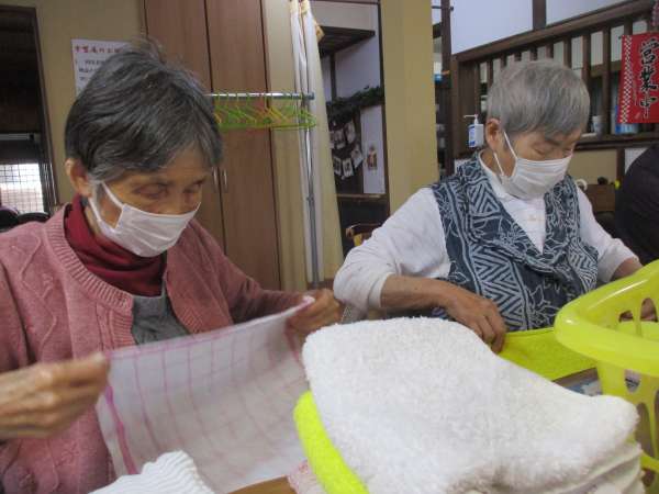 洗濯物を畳んで下さる母達