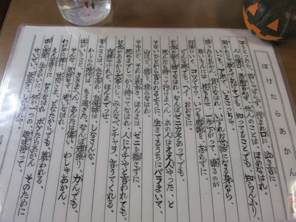 バイタルチェック、朝会を行って一日の予定をお伝えします。