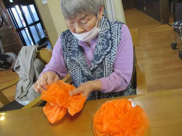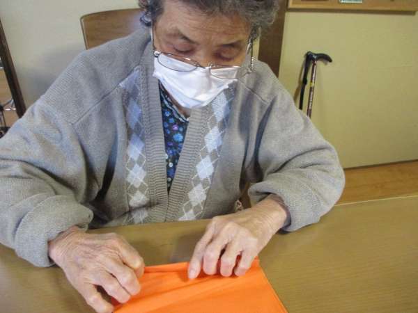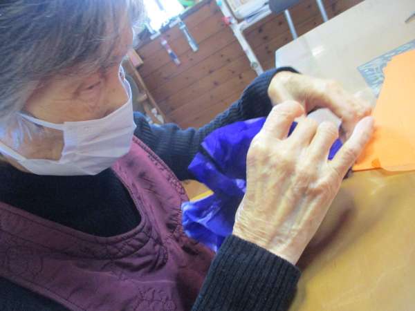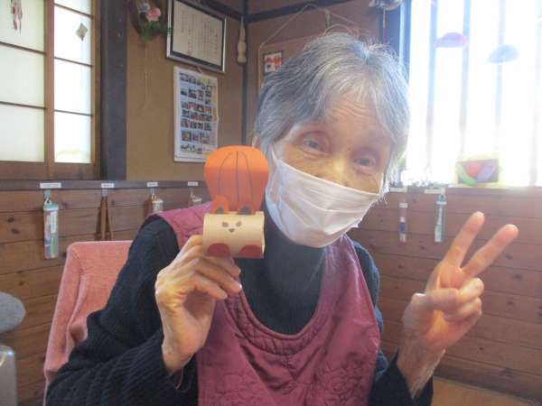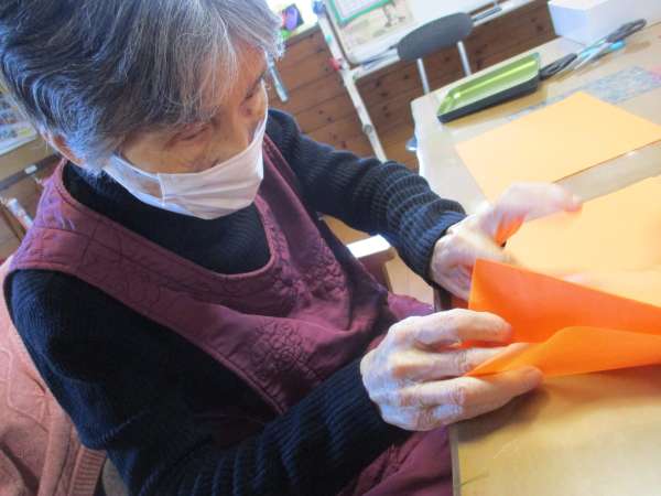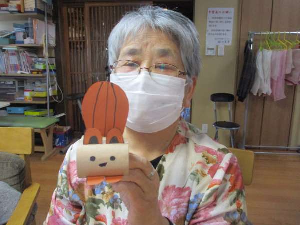 半分に切ったトイレットペーパーの芯に折り紙をまいて貼って