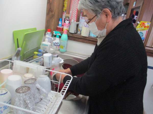 洗い物のお手伝いをしてくださる母