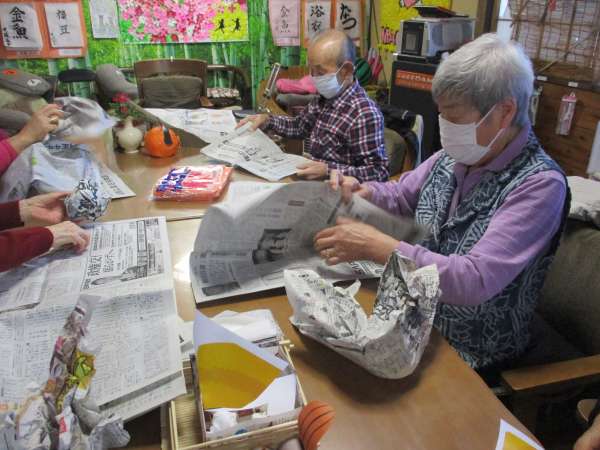 新聞紙チームは丸めて丸めて