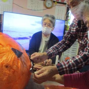 カボチャ🎃の目と鼻を切っていただきました