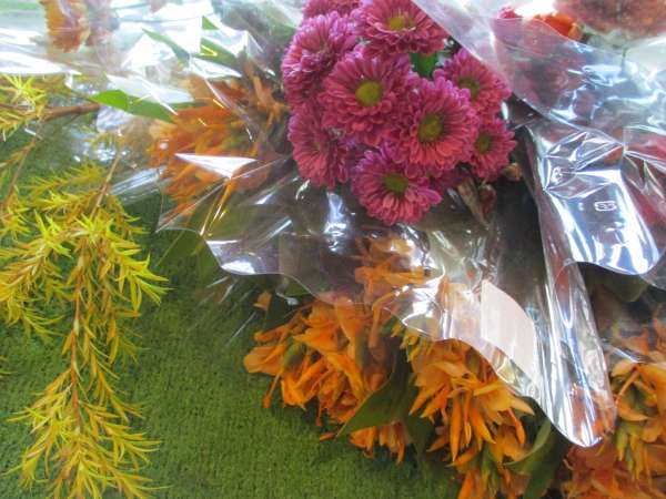 小菊も入れて、黄色の葉っぱは、空いているところに