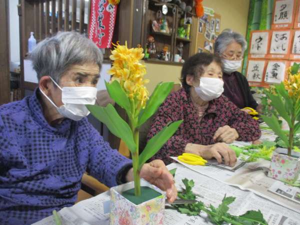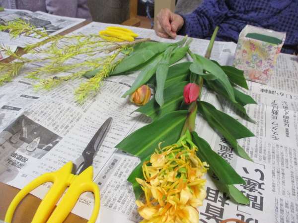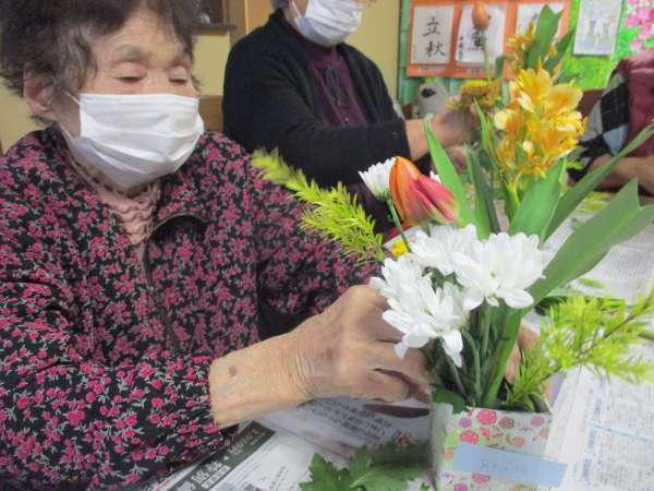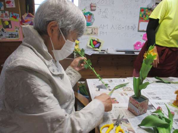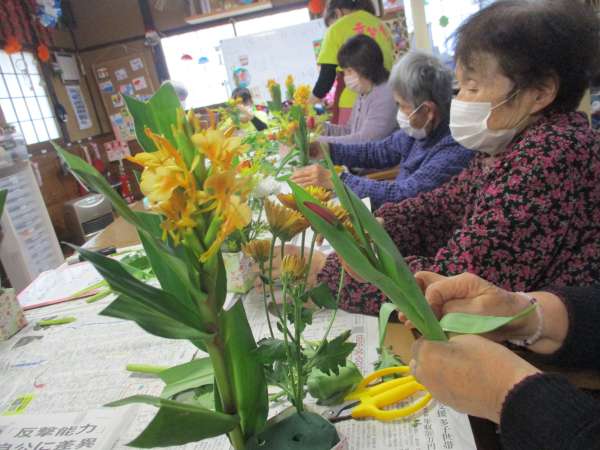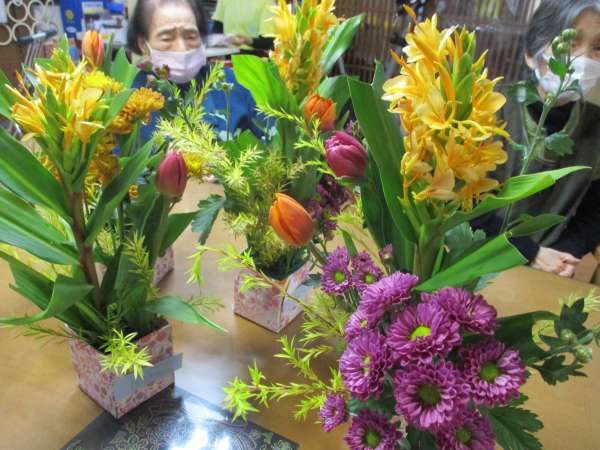 同じ材料で作っても、それぞれの個性が出て楽しいお花時間