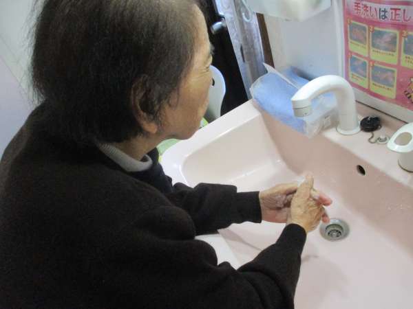 石鹸での手洗いと、うがいを行っていただいています