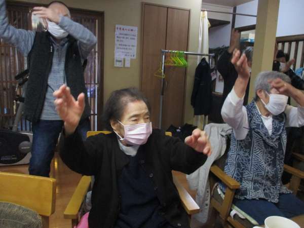 来庵中は、歌って、身体を動かし、入浴や食事