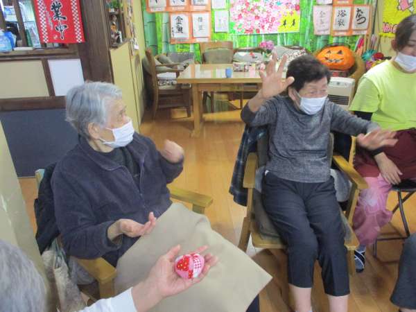 お手玉をお隣へ送ります