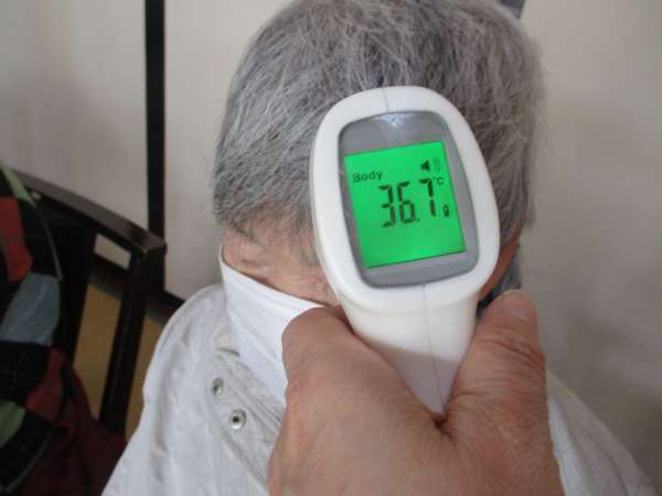 入口での検温クローバー
