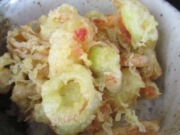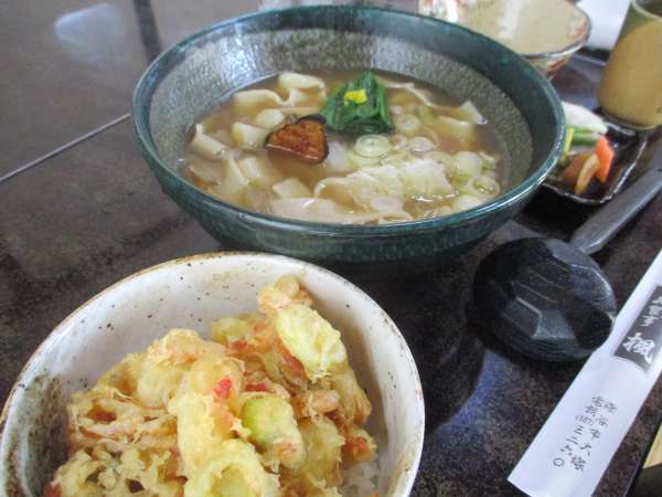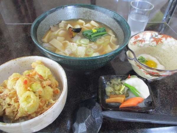 煮ぼうとうと深谷ネギと小柱のかき揚丼🤩