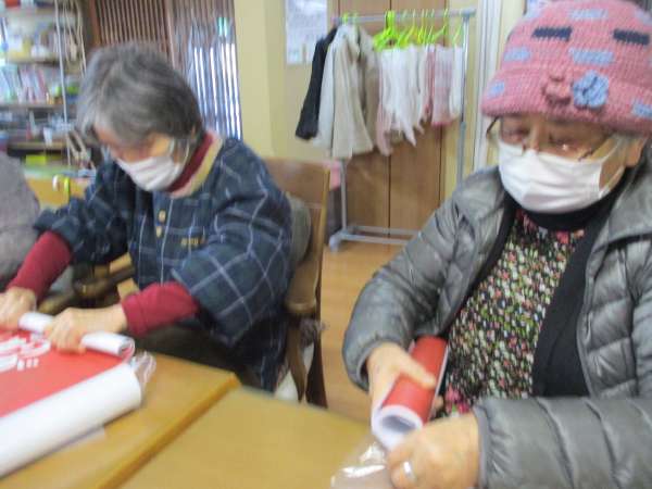 丸めて袋に入れるのをお手伝いしていただきました