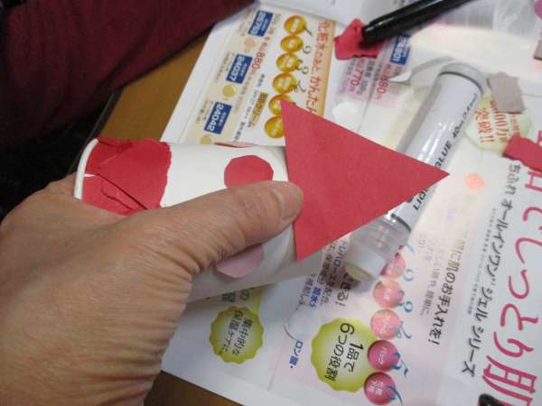 細かくちぎった紙を紙コップに貼り付けていきます(=゚ω゚)ノ