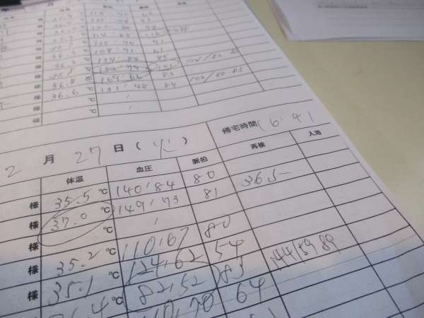 熱いお茶を飲みながらお一人お一人お聞きしています