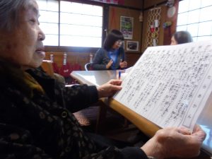 朝の歌「富士山」、「ぼけたらあかん」の唱和、朝の体操です。