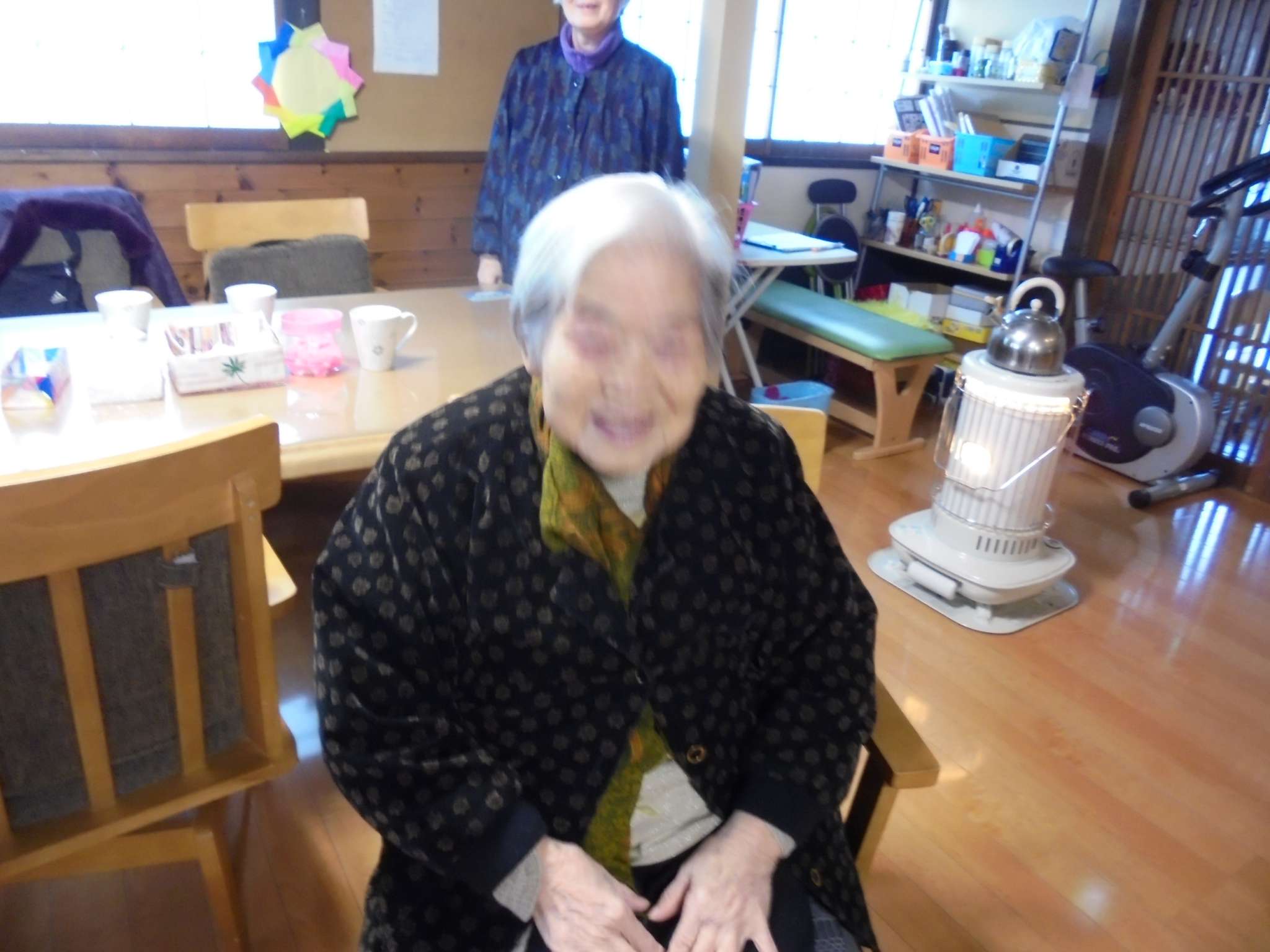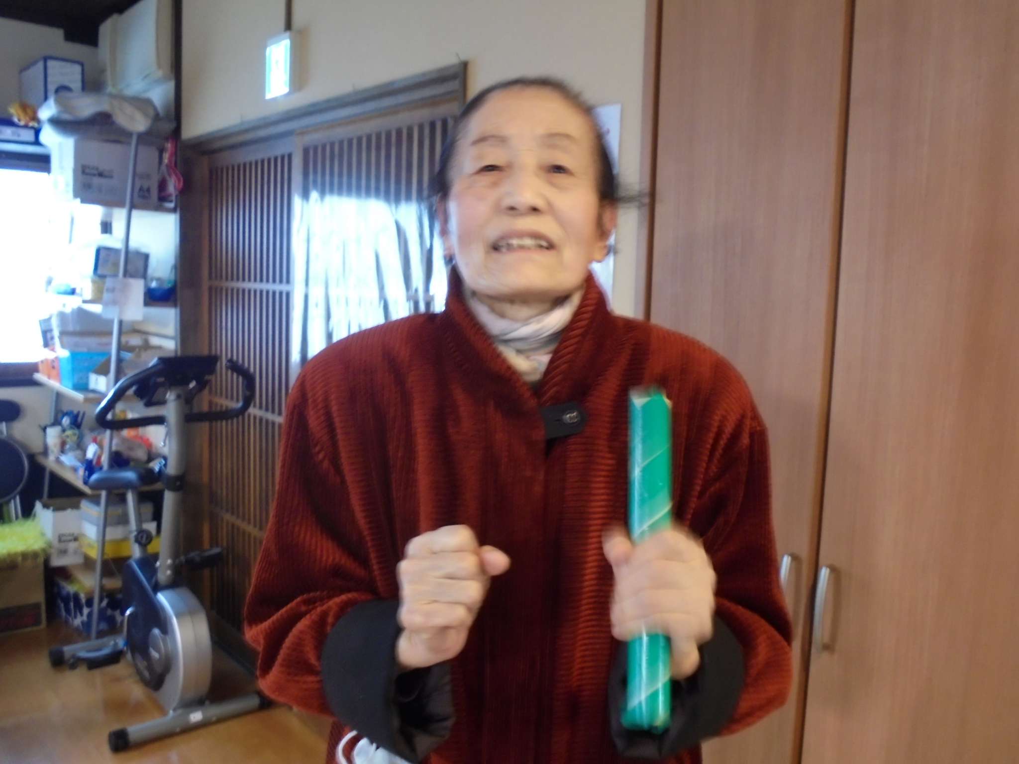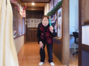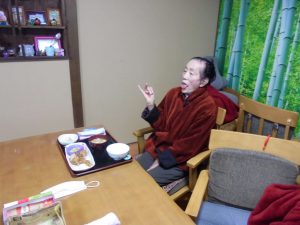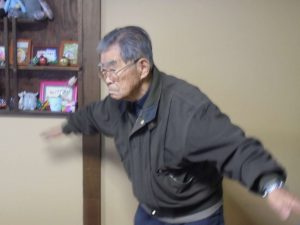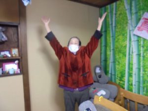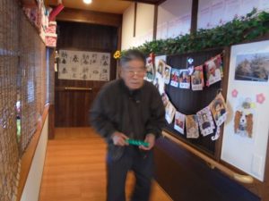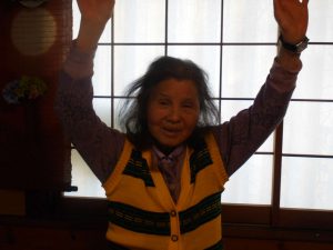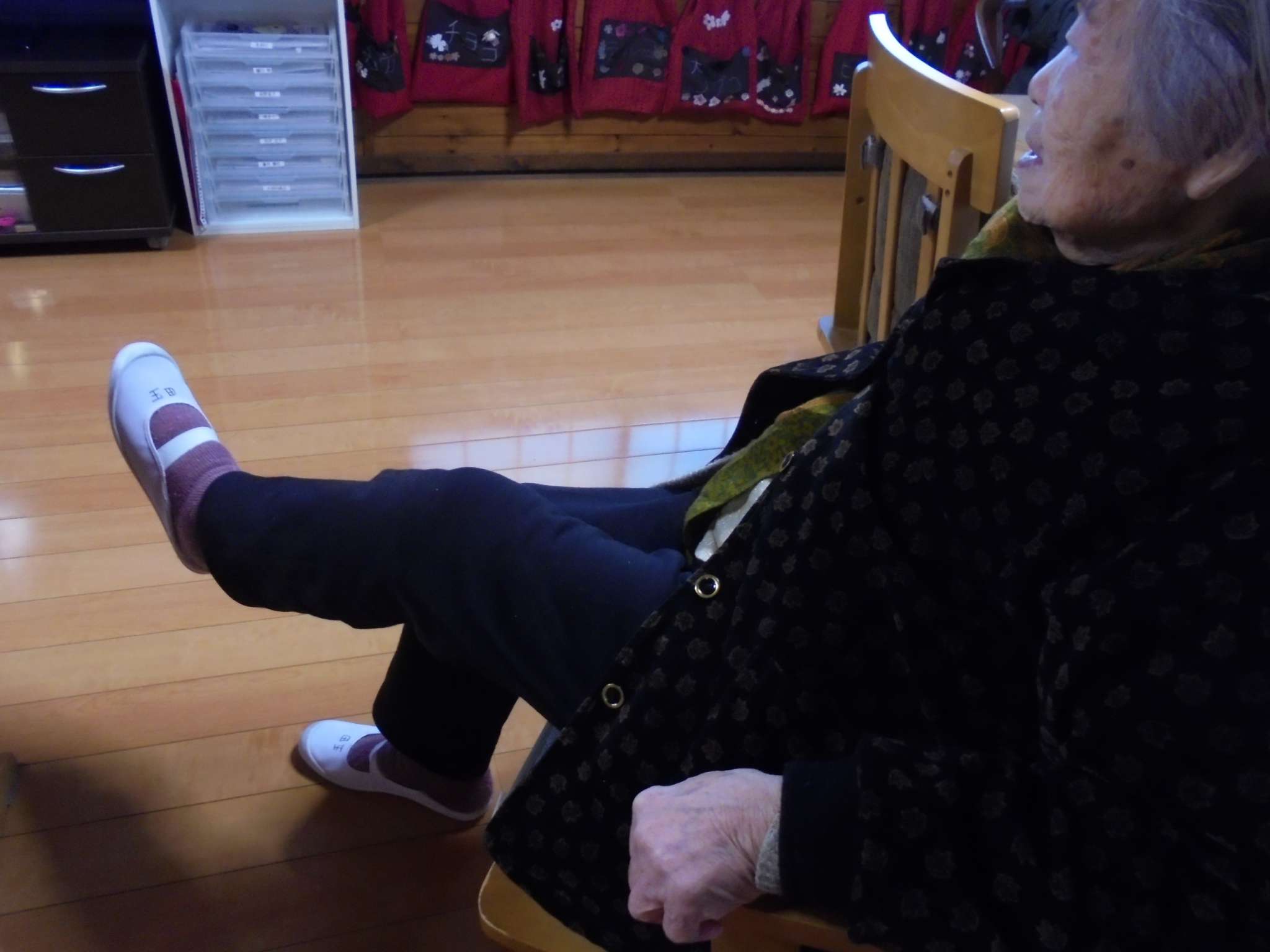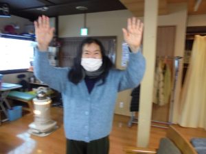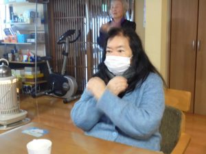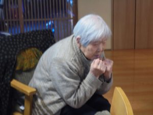 午後は体操の後、室内での歩行訓練です。 本当は、外での散歩で気分転換の歩行訓練といきたいところだったのですが、冷たい風がでてきたので庵内にて行いました。