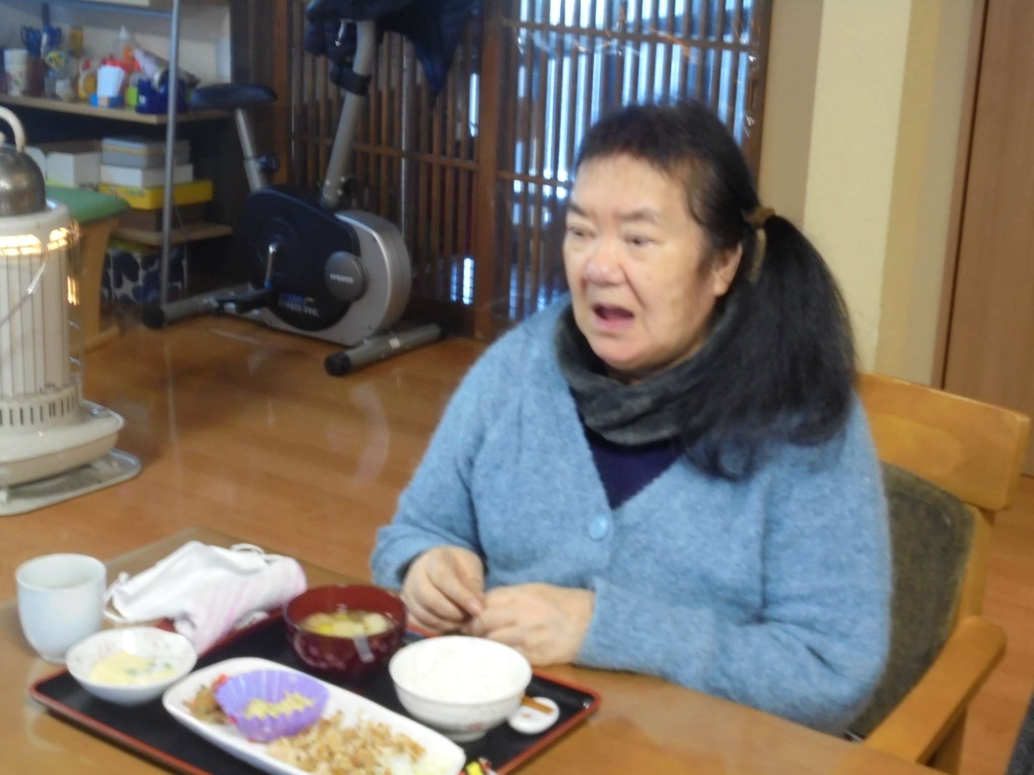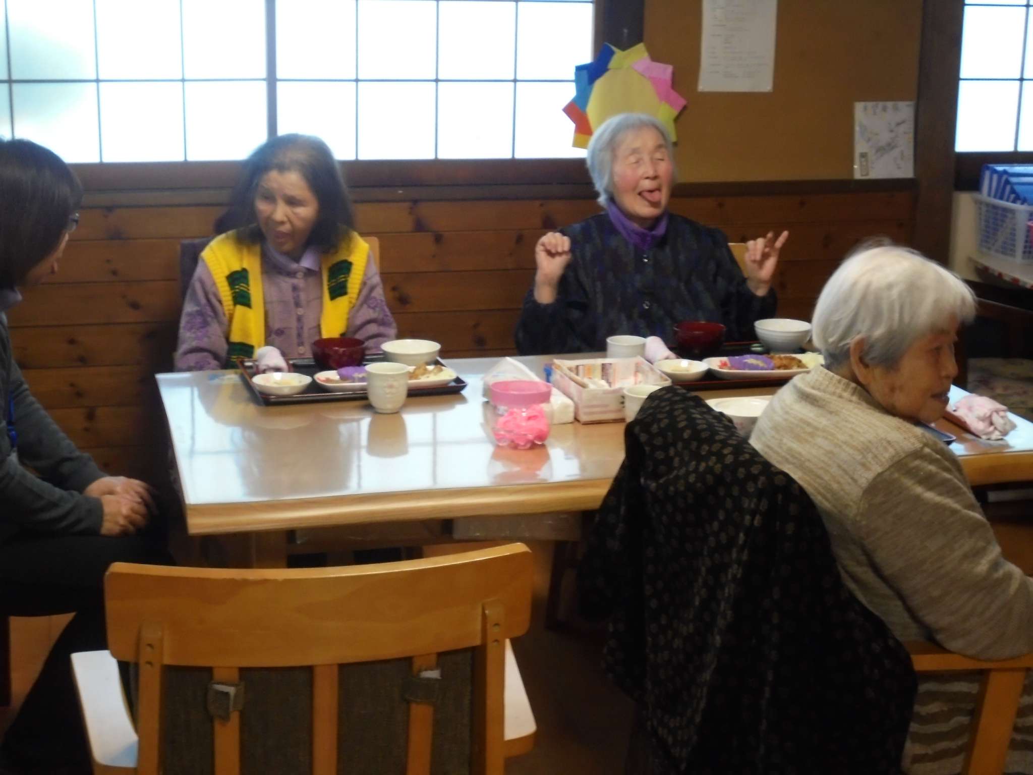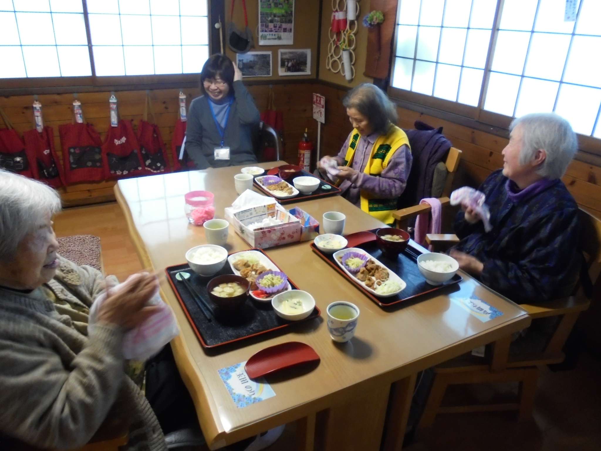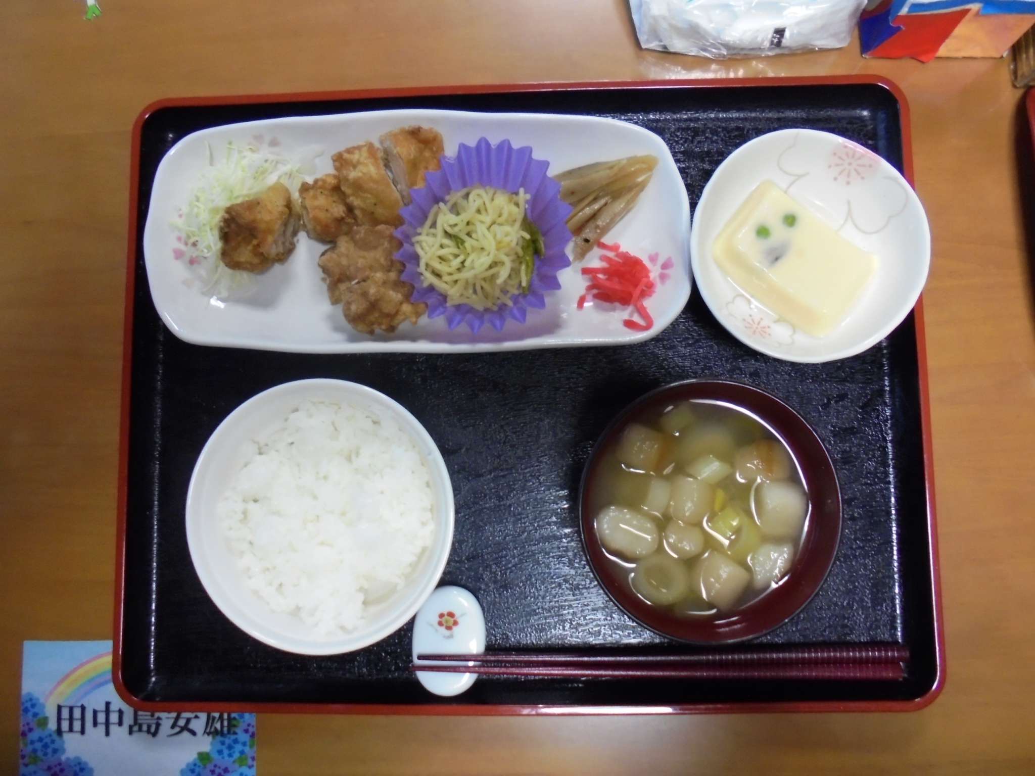 献立は「鶏の唐揚げ・海鮮焼きそば・茶碗蒸し・ごはん・味噌汁」でした。皆さん、完食してました。好き嫌いも少ないんです