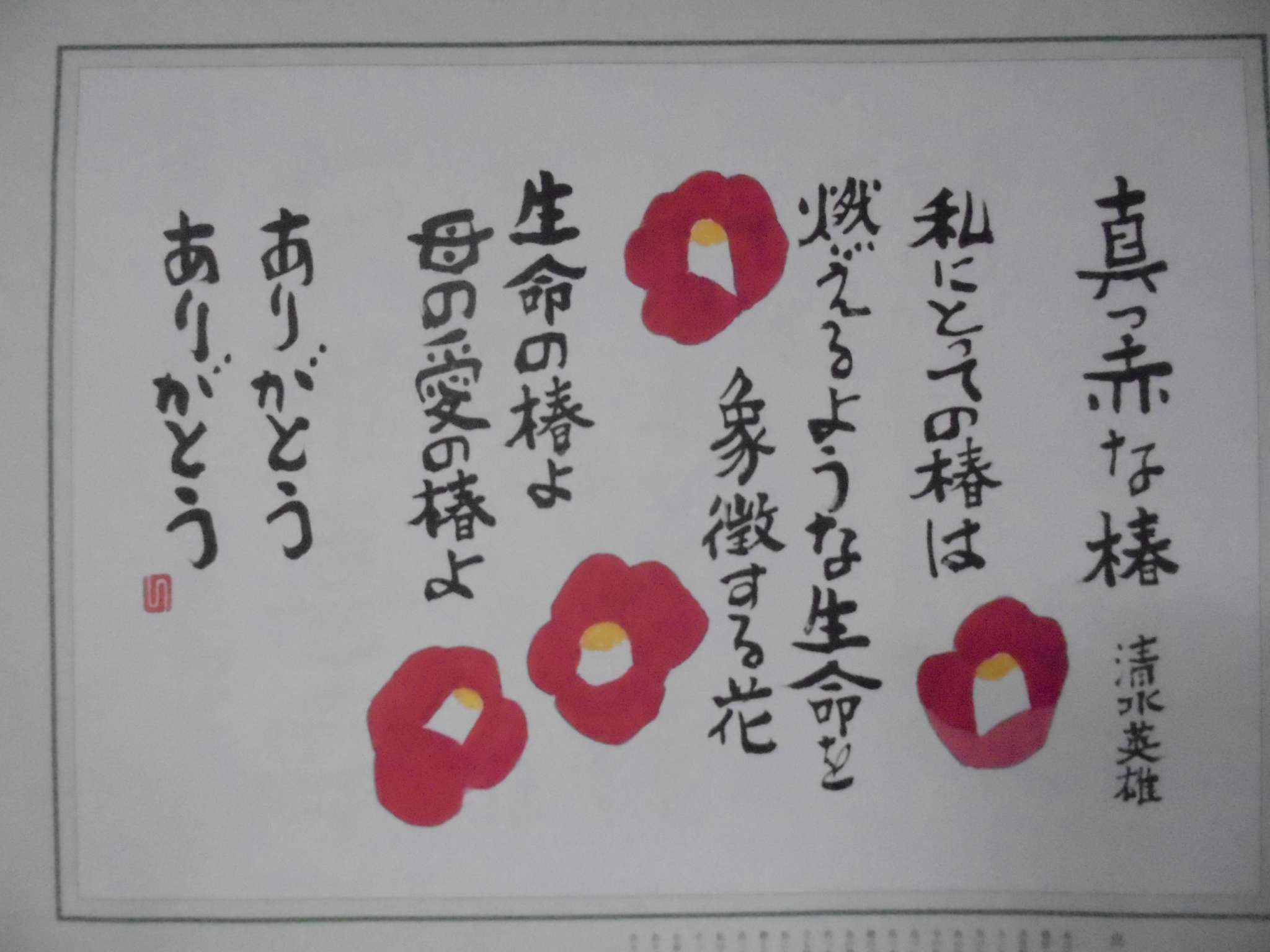 利用者様のお宅の庭に、椿が咲いています