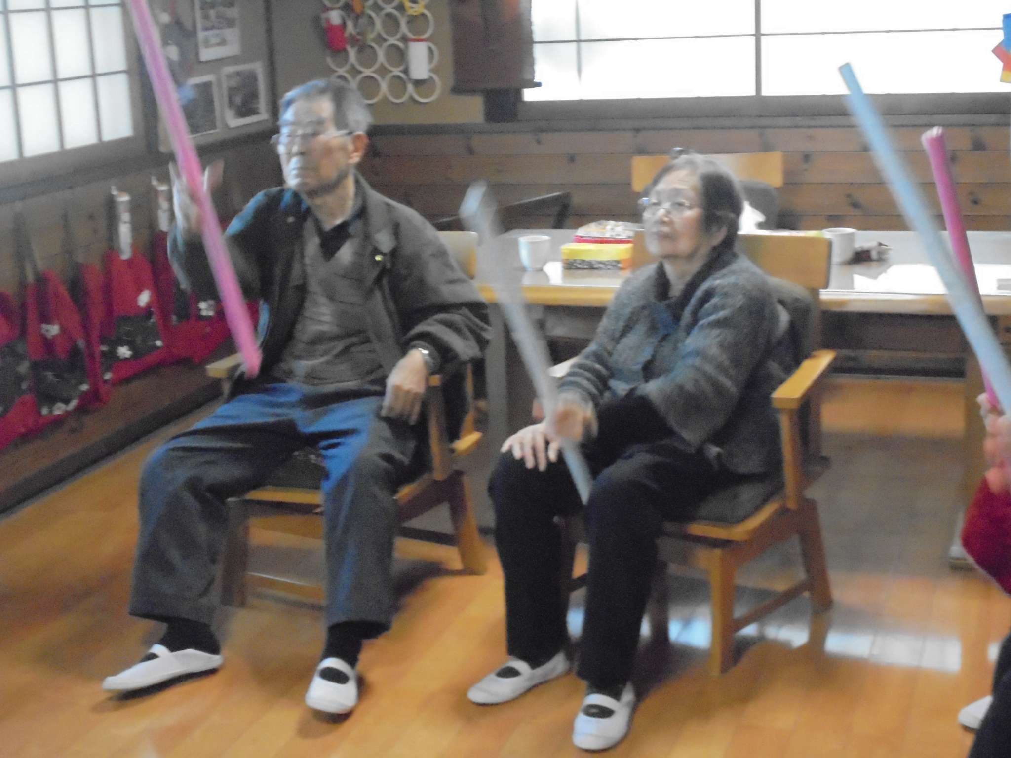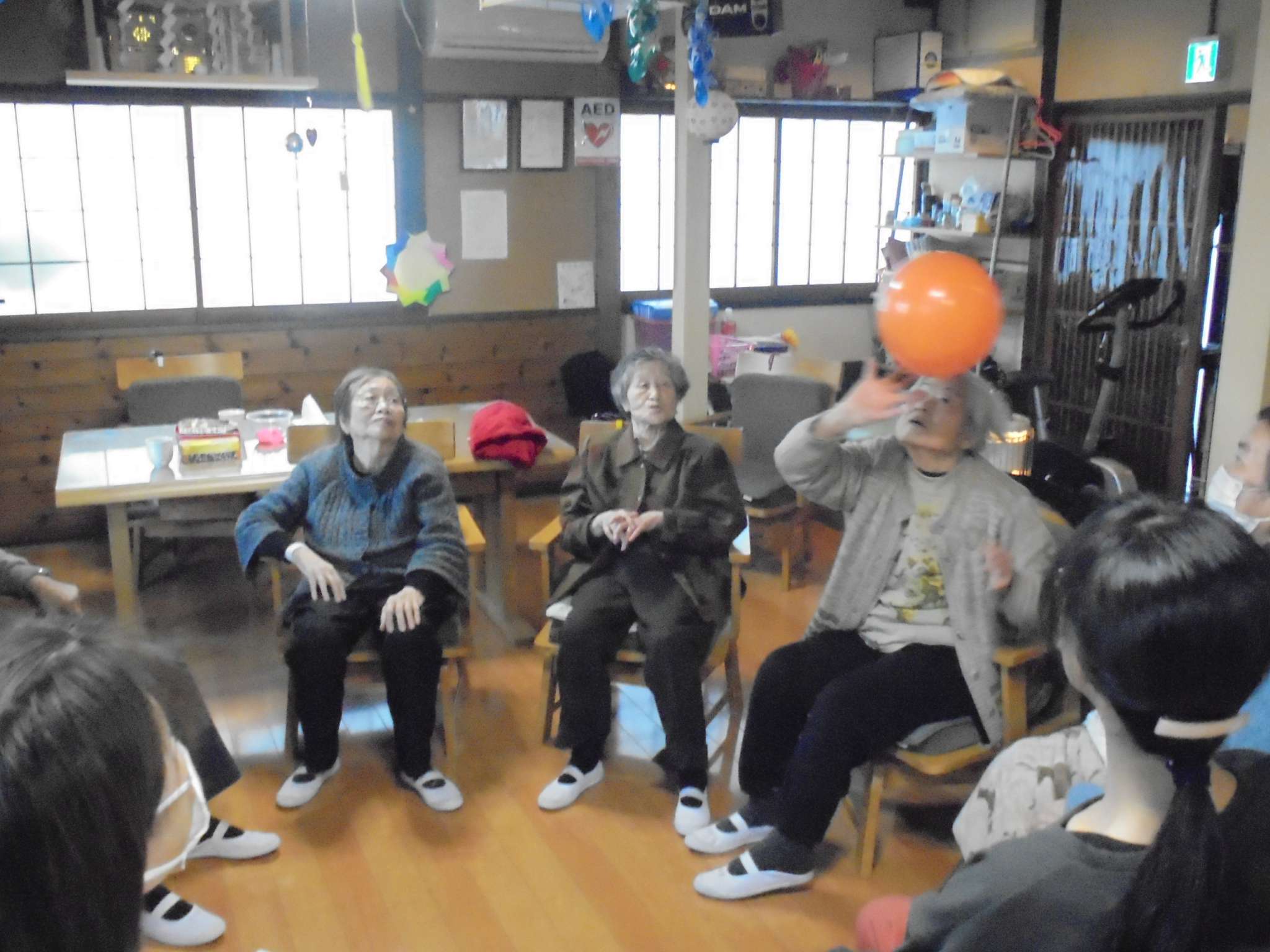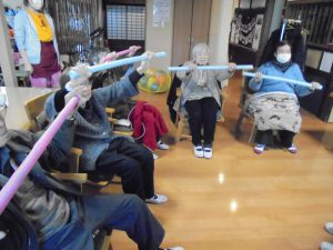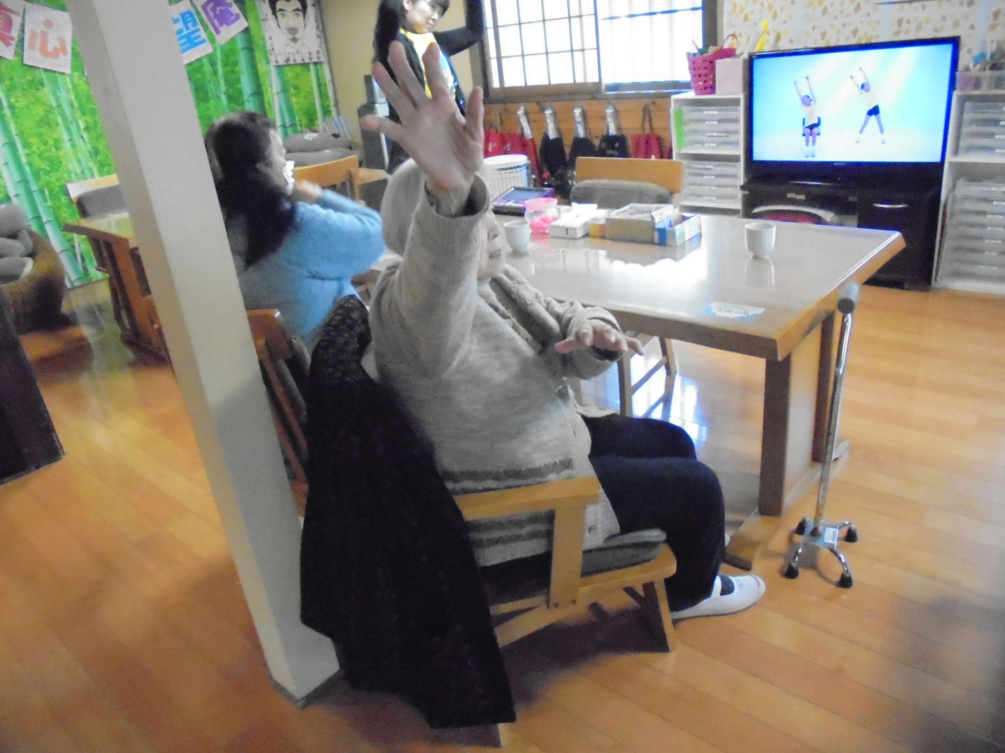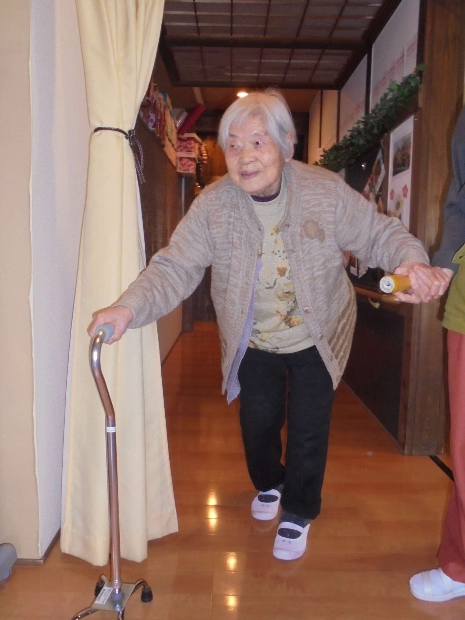 午後の体操の後は、室内歩行訓練